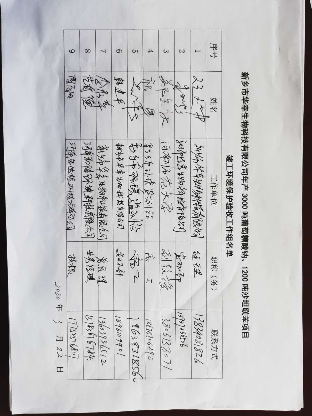依據(jù)國(guó)務(wù)院第682號(hào)文頒布的新《建設(shè)項(xiàng)目環(huán)境保護(hù)管理?xiàng)l例》和原環(huán)境保護(hù)部國(guó)環(huán)規(guī)環(huán)評(píng)[2017]4號(hào)文公告的《建設(shè)項(xiàng)目竣工環(huán)境保護(hù)驗(yàn)收暫行辦法》的相關(guān)要求,新鄉(xiāng)市華幸生物科技有限公司于2020年1月20日在新鄉(xiāng)市華幸生物科技有限公司廠區(qū)召開會(huì)議,對(duì)新鄉(xiāng)市華幸生物科技有限公司年產(chǎn)30000噸葡萄糖酸鈉、1200噸沙坦聯(lián)苯項(xiàng)目進(jìn)行竣工環(huán)境保護(hù)驗(yàn)收。會(huì)議成立了驗(yàn)收工作組,成員由建設(shè)單位新鄉(xiāng)市華幸生物科技有限公司、驗(yàn)收檢測(cè)單位河南和陽(yáng)環(huán)境科技有限公司、河南宏達(dá)檢測(cè)技術(shù)有限公司的代表及邀請(qǐng)的技術(shù)**組成(驗(yàn)收工作組名單附后)。會(huì)前,驗(yàn)收工作組成員對(duì)工程主要生產(chǎn)設(shè)施、環(huán)保設(shè)施進(jìn)行了現(xiàn)場(chǎng)檢查,會(huì)議聽取了建設(shè)單位關(guān)于項(xiàng)目建設(shè)情況及竣工環(huán)保工作的情況介紹、竣工環(huán)保驗(yàn)收監(jiān)測(cè)報(bào)告編制單位關(guān)于驗(yàn)收監(jiān)測(cè)工作技術(shù)匯報(bào),查閱了竣工環(huán)保驗(yàn)收監(jiān)測(cè)報(bào)告,核實(shí)了有關(guān)資料。經(jīng)過(guò)認(rèn)真審議與討論,形成如下驗(yàn)收意見: